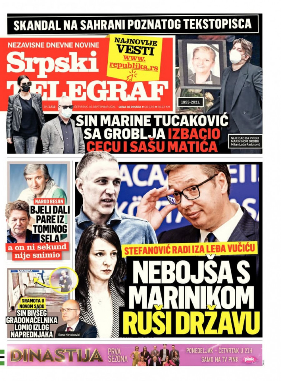 Jasno je već duže da je interesna grupa koja sebe naziva srpskom opozicijom dobila nalog od nekoga da ne dira neke ljude za koje postoji osnovana sumnja da su se bavili opasnim poslovima. S druge strane, Marinika, kao desna ruka Dragana Đilasa i kod njega zvanično zaposlena, napada Vučića iz svih oružja, laže i izmišlja afere bez ikakvih argumenata i dokaza. Ta takozvana opozicija je u panici, izbori su sve bliži, spin-mašenerija radi danonoćno, a glasačima, osim pljuvanja po Vučiću, nemaju šta da ponude. Ovakvih laži biće sve više i biće sve gore
