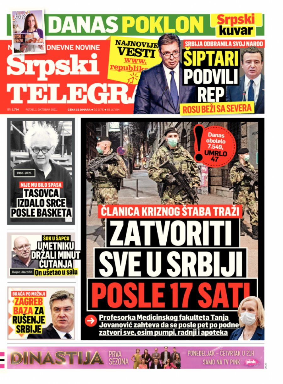 Srpski telegraf u štampanom izdanju za petak 1. oktobar donosi pregršt važnih i interesantnih priča.