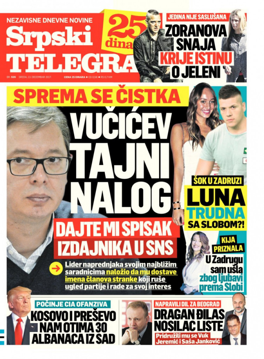 Odgovore na ova ali i mnoga druga pitanja možete pročitati u štampanom izdanju Srpskog telegrafa za 13 decembar 2017. godine kao i na portalu Republika.