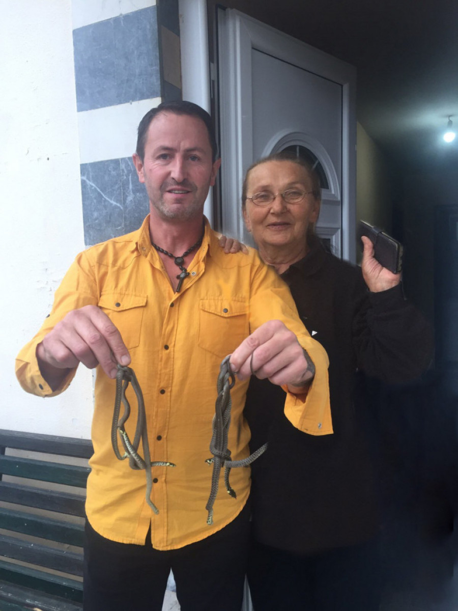 „Uhvatio sam devet zmija, nikad toliko nisam bio iznenađen s obzirom da su kod baka Mire zadovoljavjući higijenski uslovi, uređeno je i dvorište. Očigledno je da je jedna zmija davno ušla u sobu, bila tu dugo vremena i onda se nakotile. Upsešno sam ih uhvatio svaku do jedne i odneo u prirodu. Baka Mira je bila nema od šoka kad je videla sa kim je delila sobu godinama unazad“, izjavio je za RINU zmijolovac iz Užica.