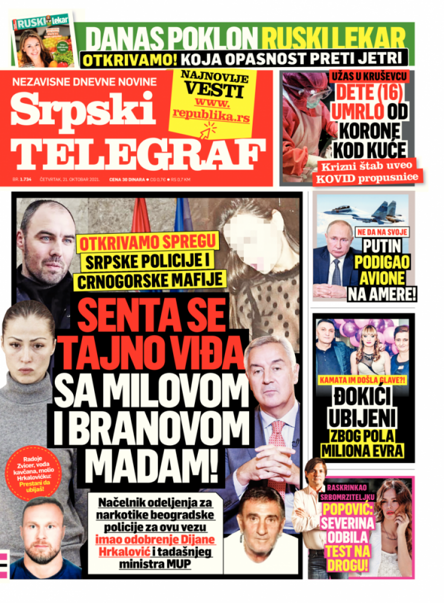 Srpski telegraf u štampanom izdanju za 21. oktobar donosi pregršt važnih i interesantnih priča.