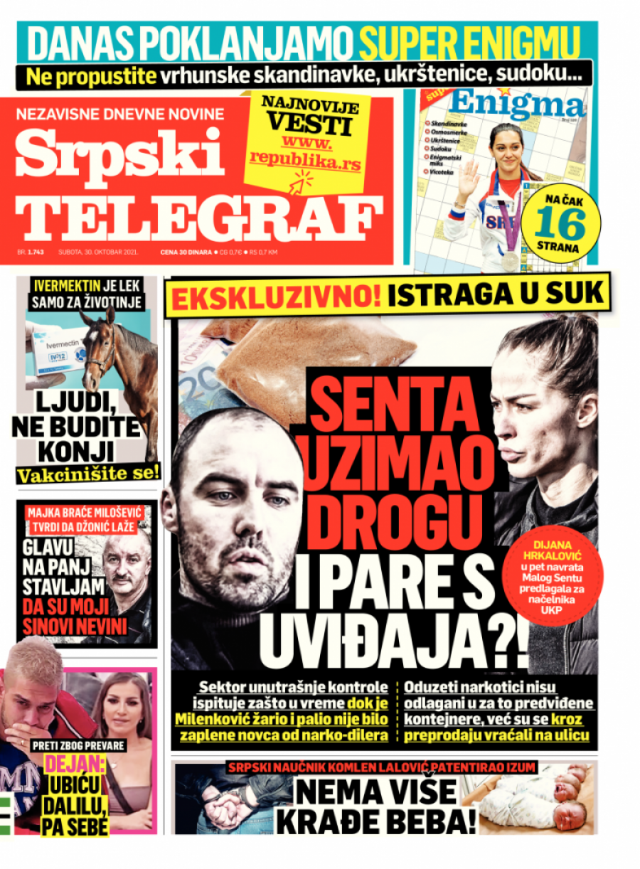 Srpski telegraf u štampanom izdanju za 30. oktobar donosi pregršt važnih i interesantnih priča: