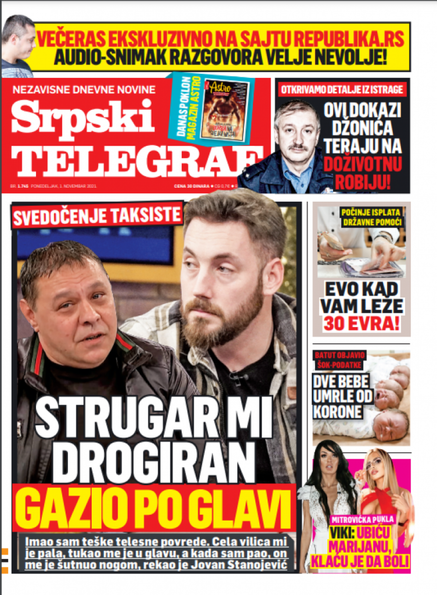 Srpski telegraf u štampanom izdanju za 1. novembar donosi pregršt važnih i interesantnih priča: