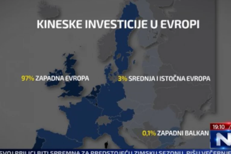 Naime, N1 je objavio da 97% "malignih" kineskih investicija je uzela zapadna Evropa, a za Zapadni Balkan ostalo je samo 0,1%.
