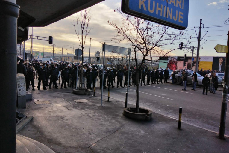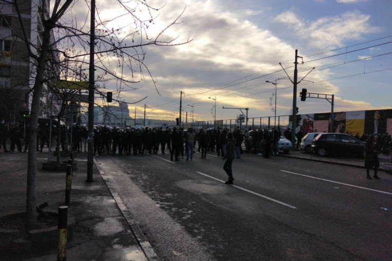 Između policije i protestanata došlo je do malog koškanja, ali nema pokušaja da se probije kordon.