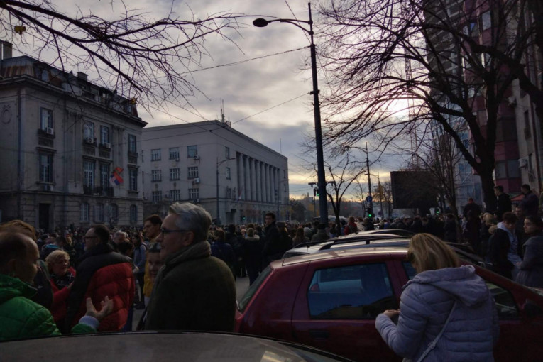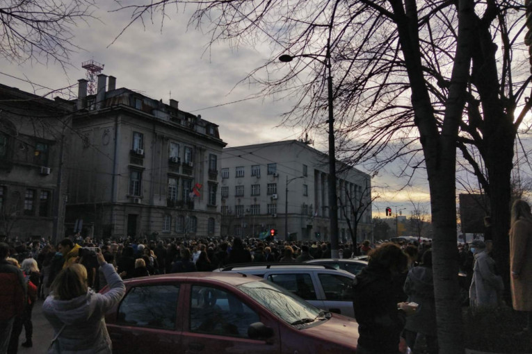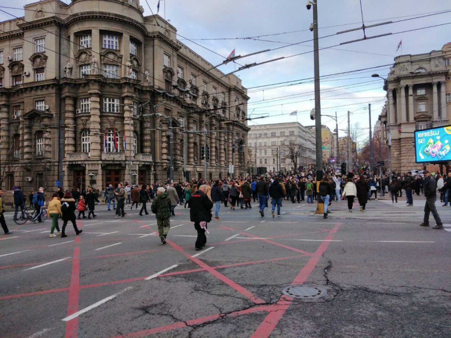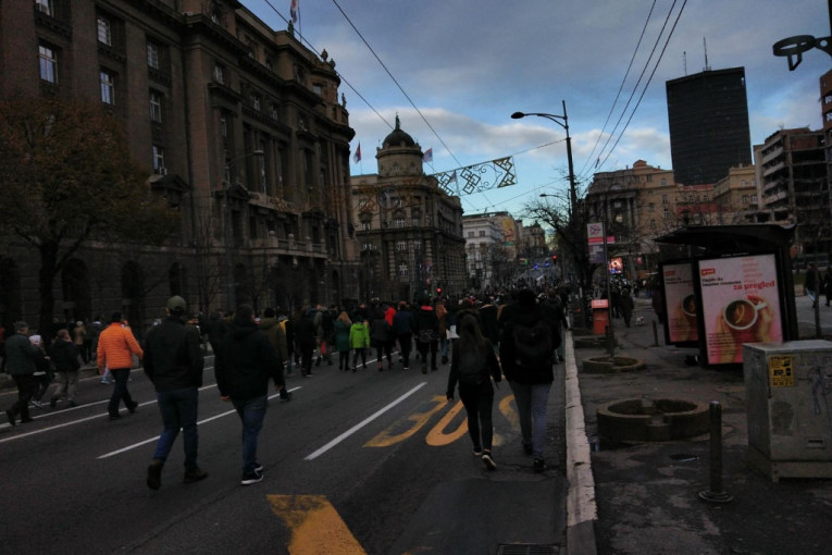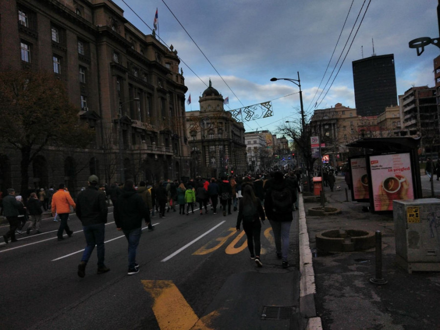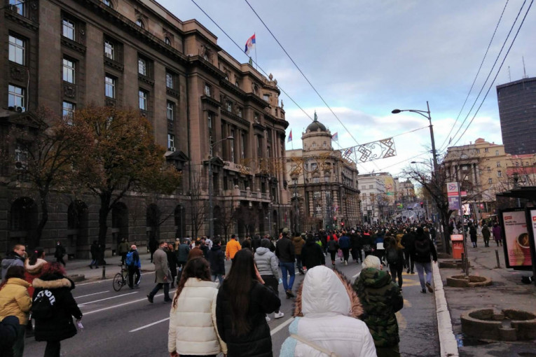 Posle kraćeg zadržavanja ispred zgrade Vlade, demostranti su se uputili prema Skupštini Srbije.