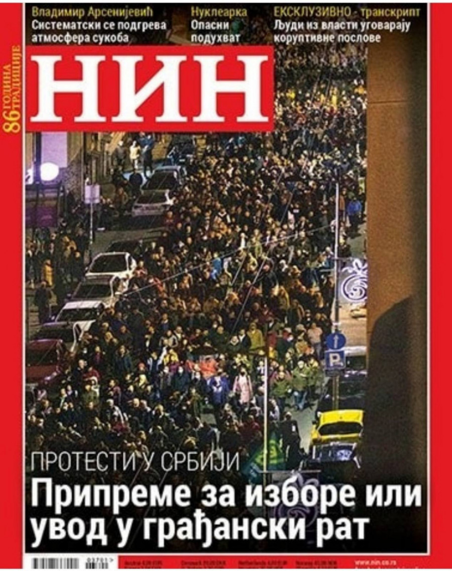 Nedeljnik NIN, koji je naklonjen opoziciji, objavio je naslovnu stranu kojom proteste koristi kao najavu za građanski rat.