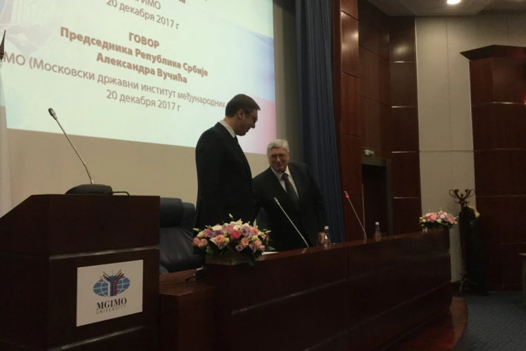 Predsednik Republike Srbije Aleksandar Vučić završava posetu Ruskoj Federaciji predavanjem na Moskovskom državnom institutu za međunarodne odnose (MGIMO), gde mu je pre početka predavanja dodeljena titula počasnog doktora tog instituta.