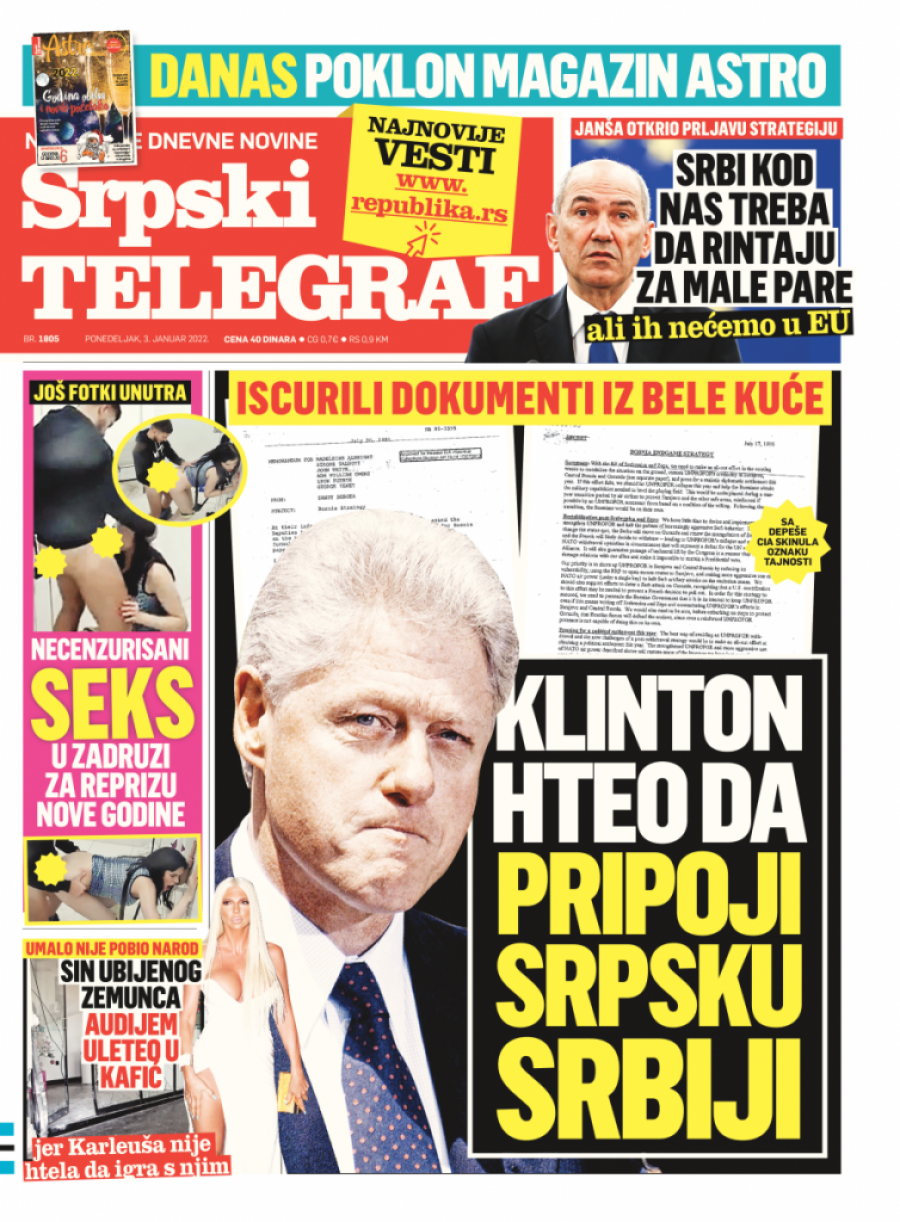 Srpski telegraf u štampanom izdanju za ponedeljak 3. januar donosi pregršt važnih i interesantnih priča.