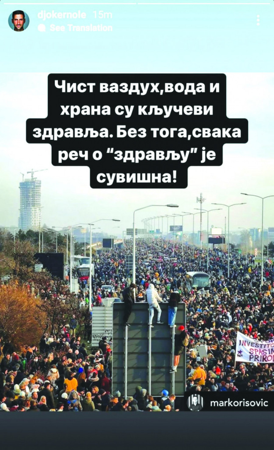 - Čist vazduh, voda i hrana su ključevi zdravlja. Bez toga, svaka reč o "zdravlju" je suvišna!