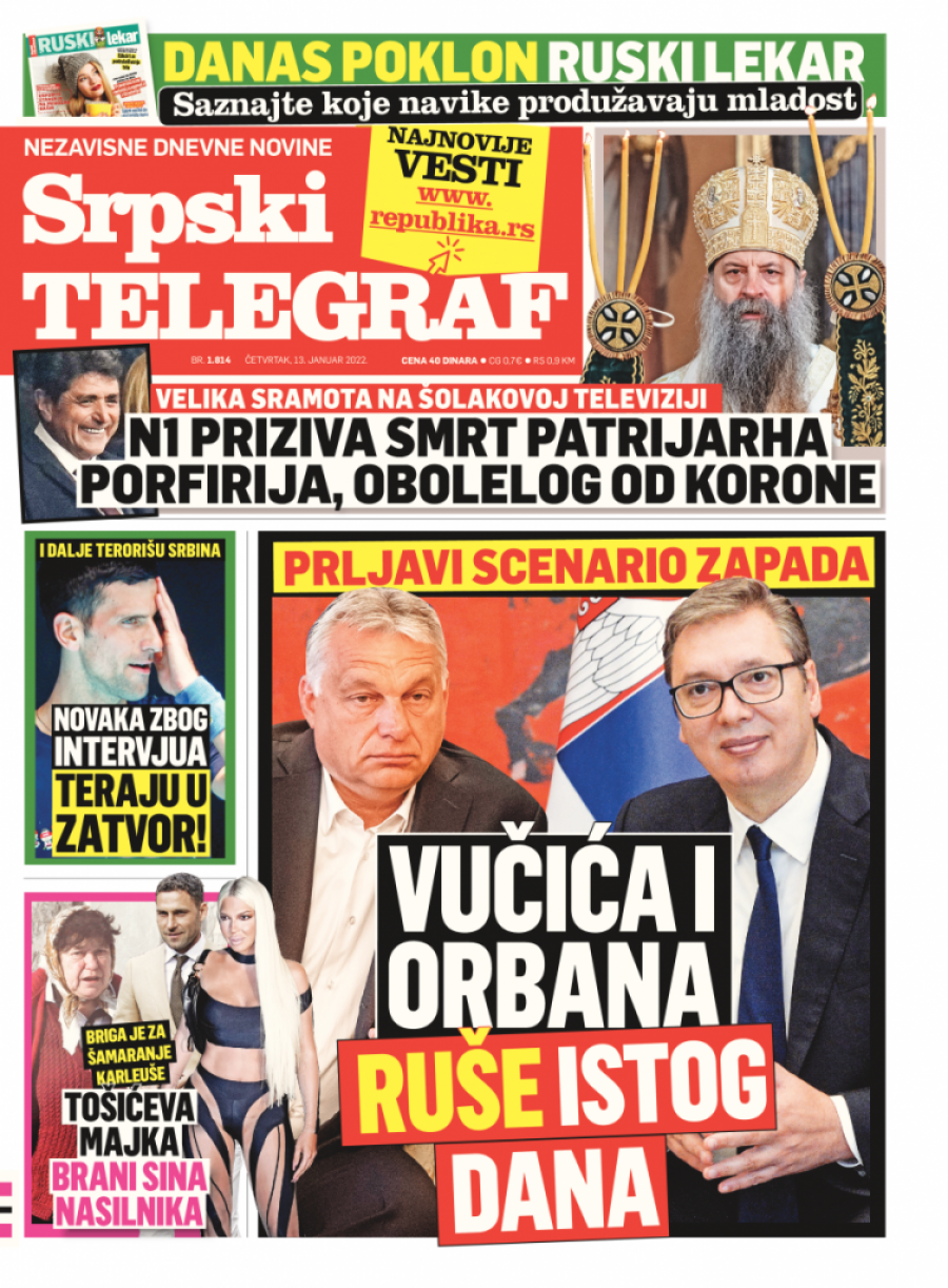 Srpski telegraf u štampanom izdanju za četvrtak 13. januar donosi pregršt važnih i interesantnih priča.