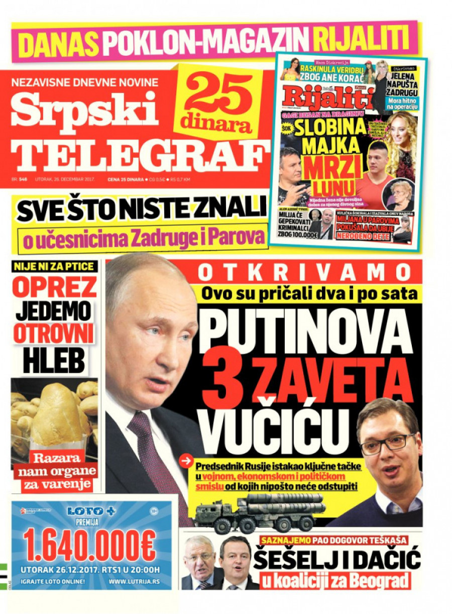 Odgovore na ova, kao i na mnoga druga pitanja možete pročitati u Srpskom telegrafu za 26. decembar, kao i na portalu Republika.