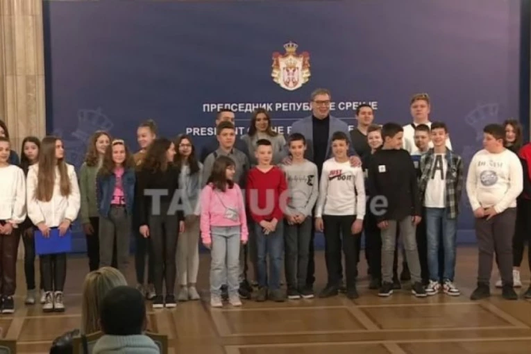 Predsednik Srbije Aleksandar Vučić primio je danas u posetu srpsku decu iz regiona, a jedna od njih, Jovana iz Mostara, održala je govor u Predsedništvu Srbije.