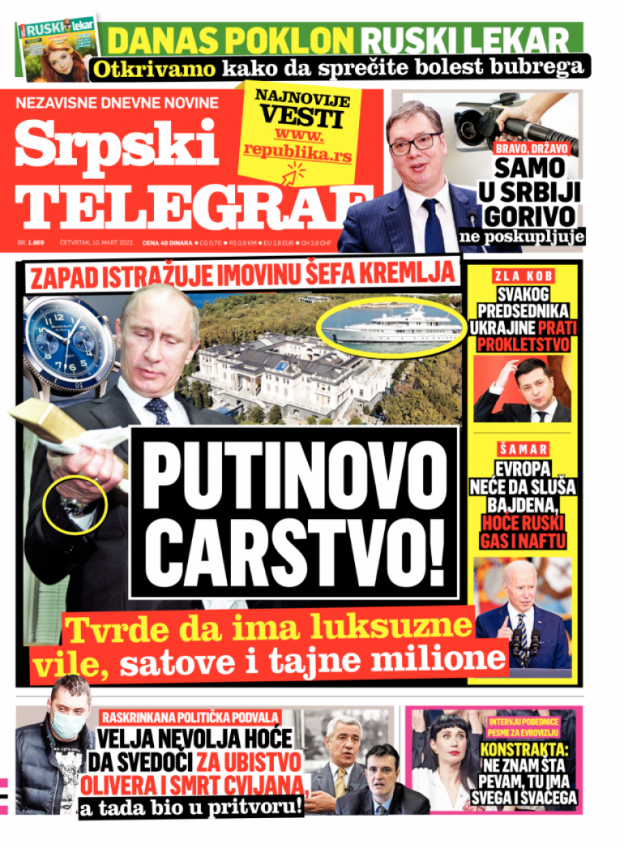 Srpski telegraf u štampanom izdanju za četvrtak 10. mart donosi pregršt važnih i interesantnih priča.