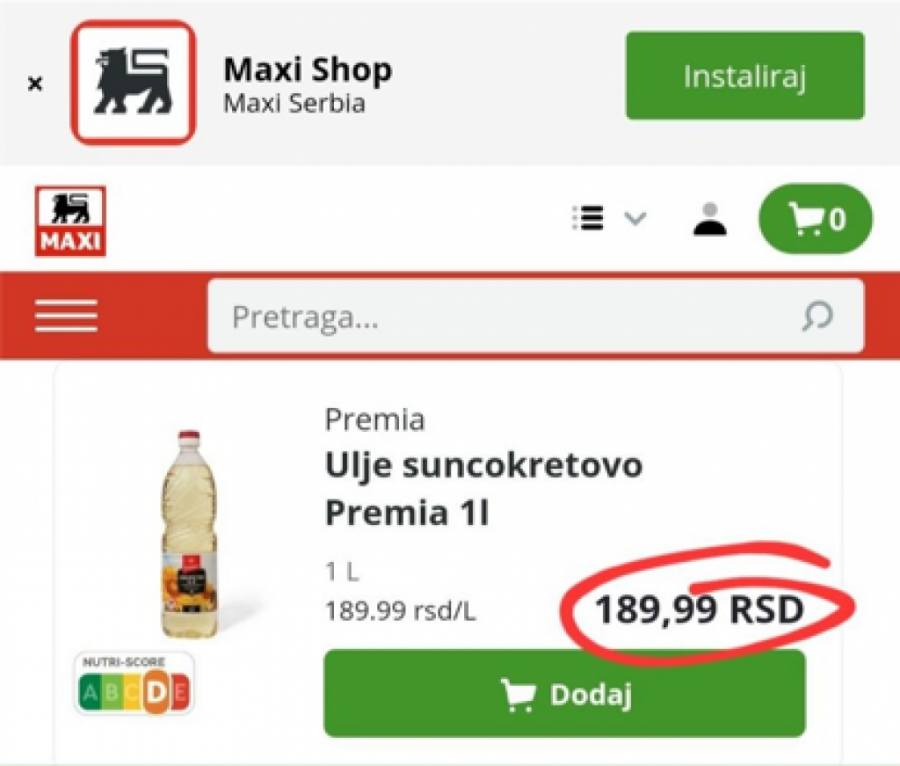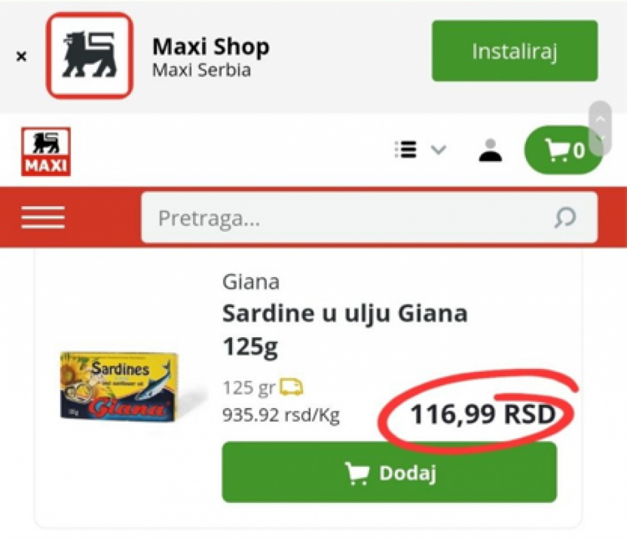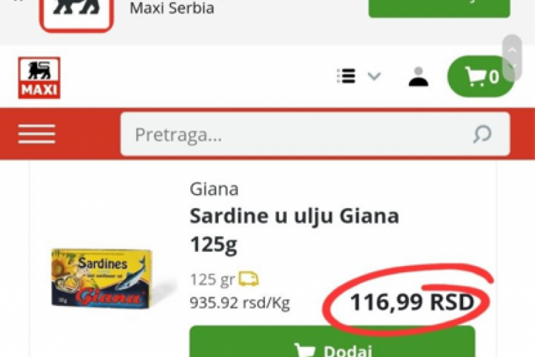 Đilasov ekspert naveo je da 150 dinara košta pakovanje sardina od 125 grama. Istina je da košta 116,99 dinara. Po njemu, ulje je 200 dinara, a na rafovima je 189,99 dinara.