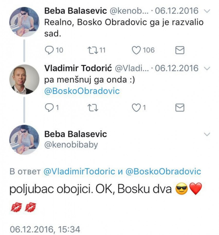 Foto: twitter.com/printscreenVelika autonomaška ljubav Boška i Vuka koji se predstavljaju kao srpski nacionalisti, a zapravo uživaju sa Đorđem, kojeg obožavaju podjednako i u Zagrebu , Vukovaru i Sarajevu.