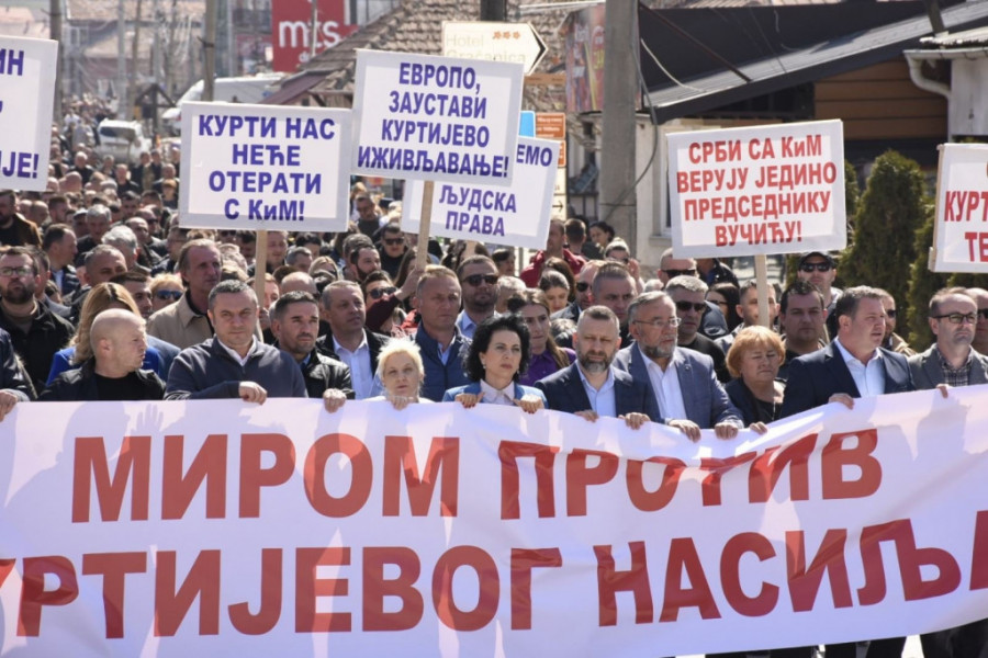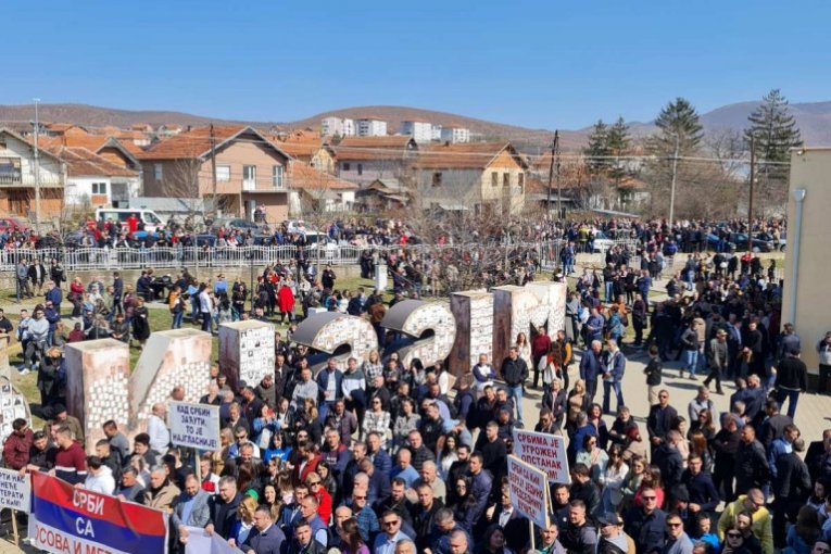 U isto vreme u severnom delu Kosovske Mitrovice nekoliko hiljada Srba se okupilo predvođeni srpskim gradonačelnicima sa severa i predstavnicima Srpske liste ispred spomenika knezu Lazaru i kreću se pored srednjih škola i Univerziteta u pravcu kružnog toka i nazad prema spomeniku, prenosi Alo.