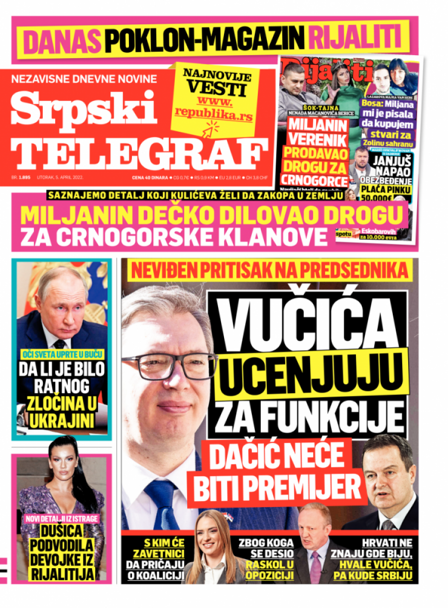 Srpski telegraf u štampanom izdanju za utorak 5. april donosi pregršt važnih i interesantnih priča.