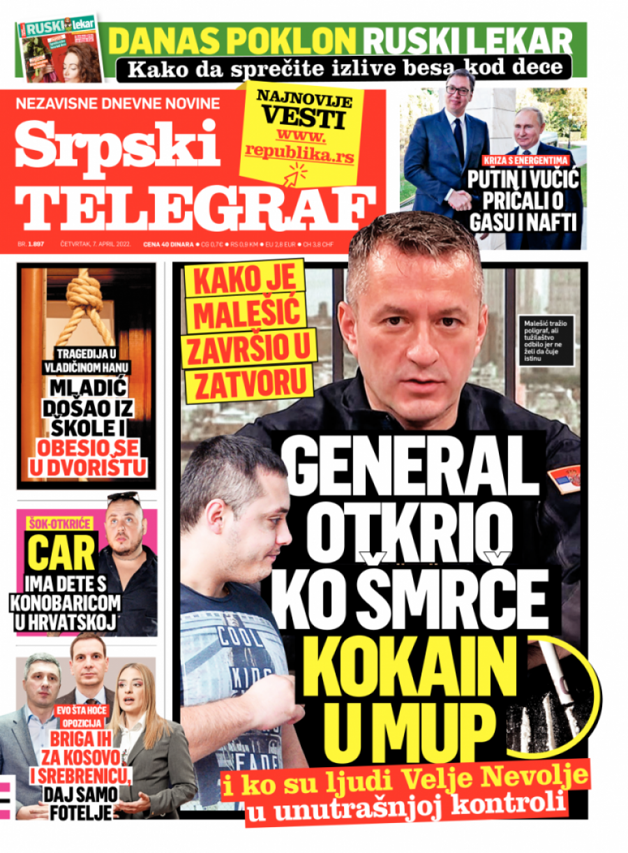 Srpski telegraf u štampanom izdanju za četvrtak 7. april donosi pregršt važnih i zanimljivih priča.