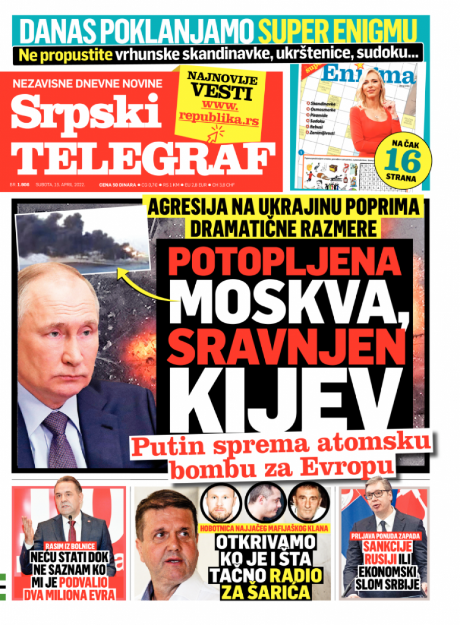 Srpski telegraf u štampanom izdanju za subotu 16. april donosi pregršt važnih i interesantnih priča.