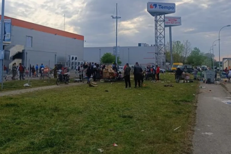 LJUDI POMAHNITALO GRABILI ROBU IZ IZGORELOG TRŽNOG CENTRA U NOVOM SADU! Policija intervenisala, nastao HAOS! (FOTO, VIDEO)