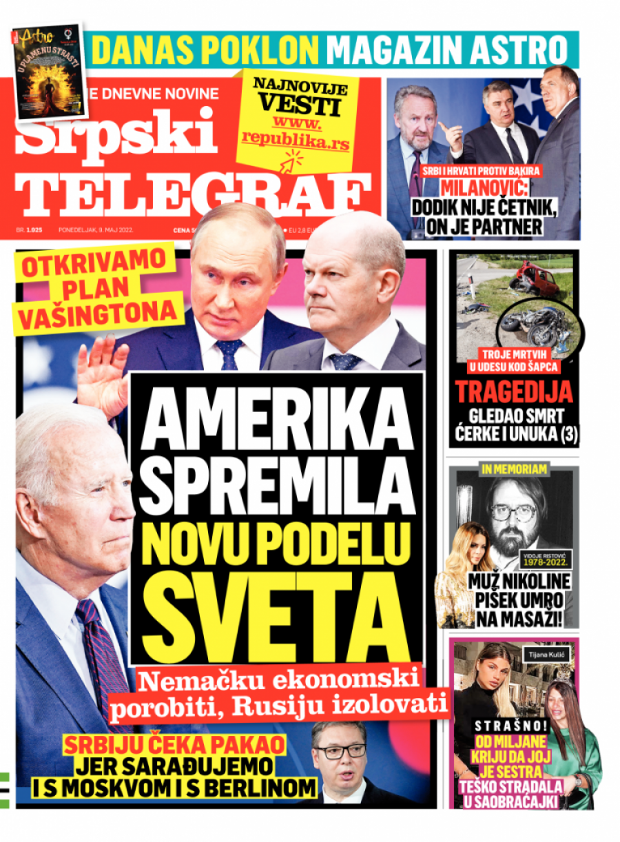 Srpski telegraf u štampanom izdanju za sredu 9. maja donosi pregršt važnih i interesantnih priča.