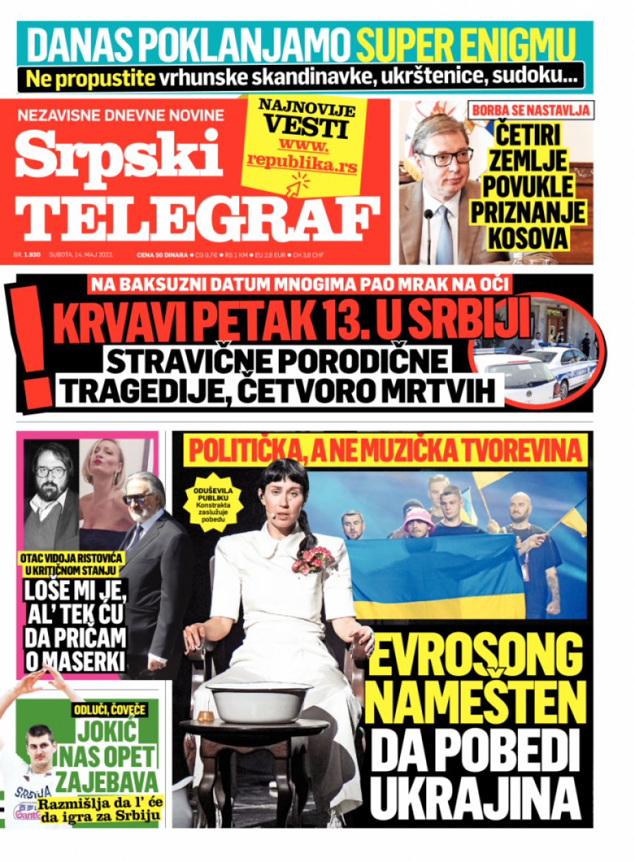Srpski telegraf u štampanom izdanju za subotu 14. maj donosi pregršt važnih i interesantnih priča.