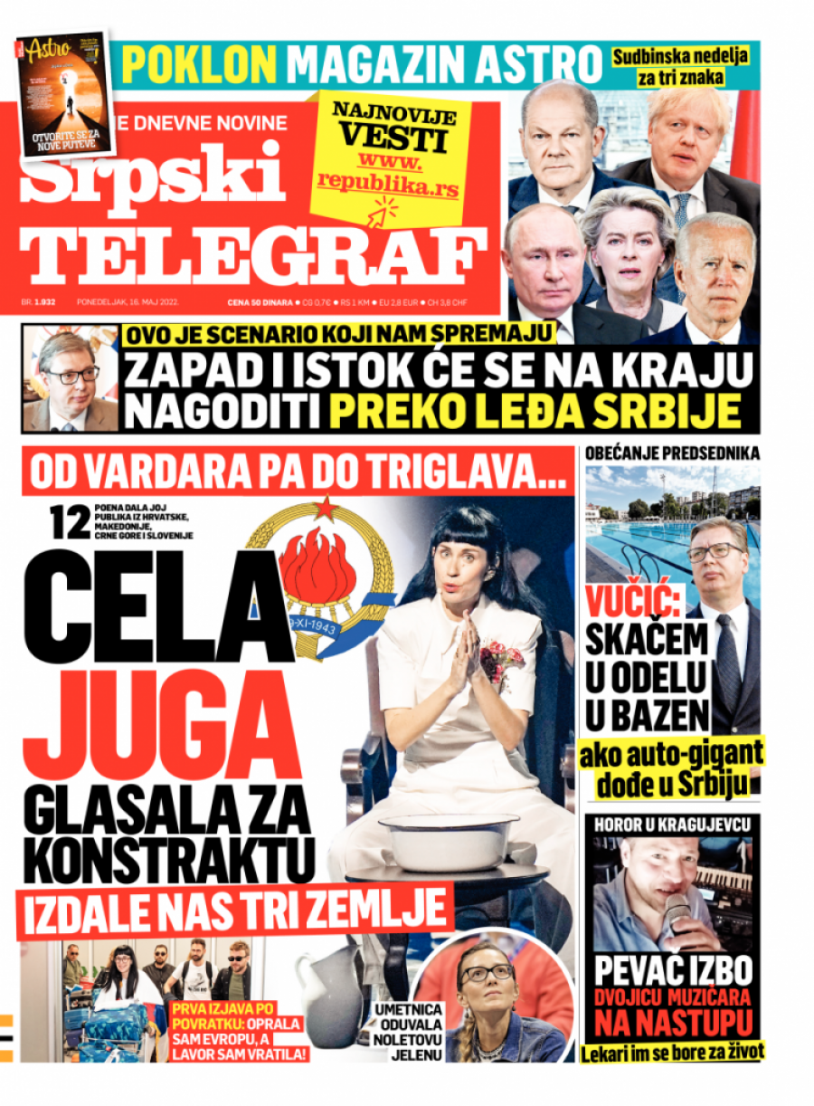 Srpski telegraf u štampanom izdanju za ponedeljak 16. maj donosi pregršt važnih i interesantnih priča.