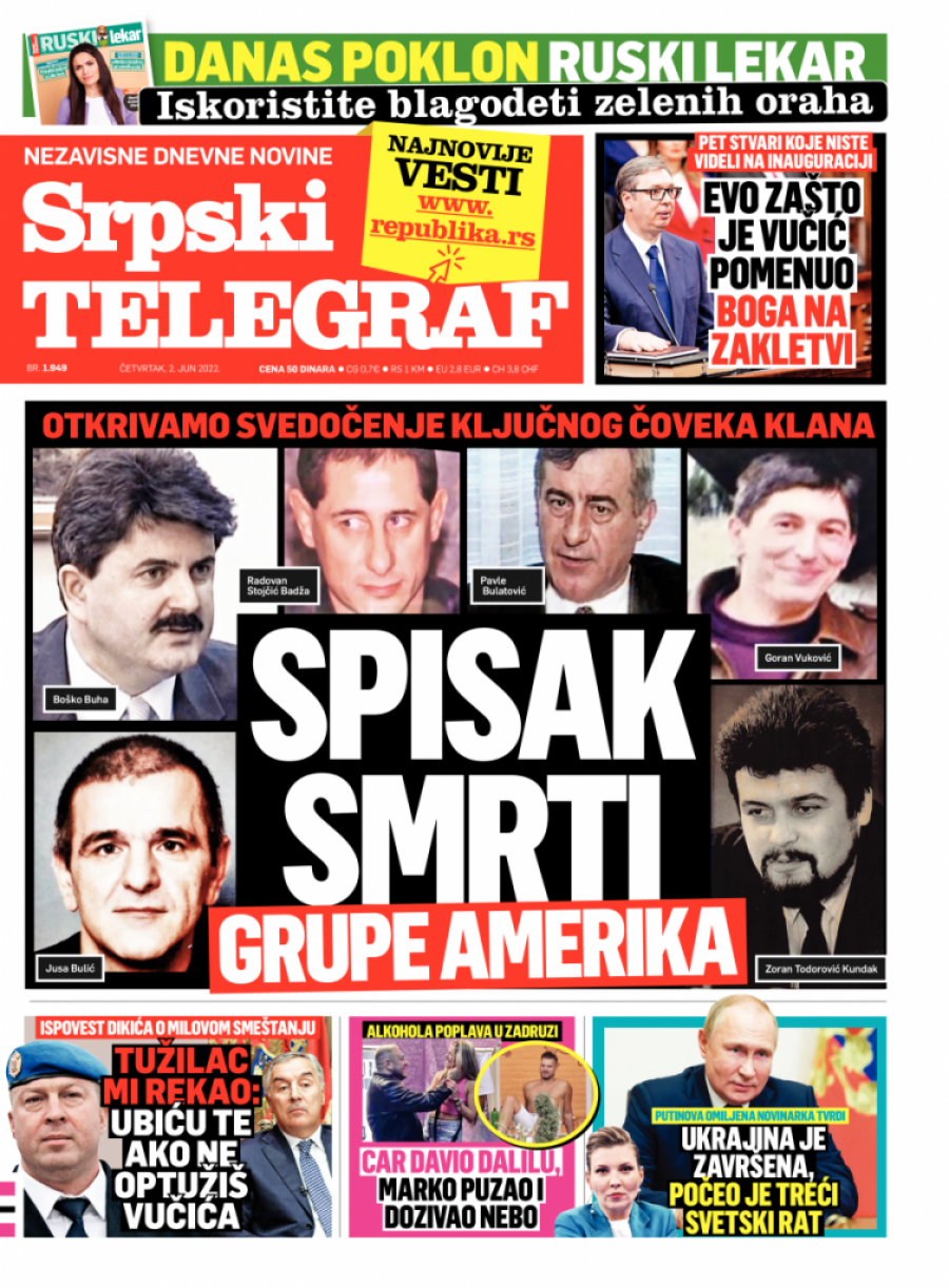 Srpski telegraf u štampanom izdanju za četvrtak 2. jun donosi pregršt važnih i interesantnih priča.