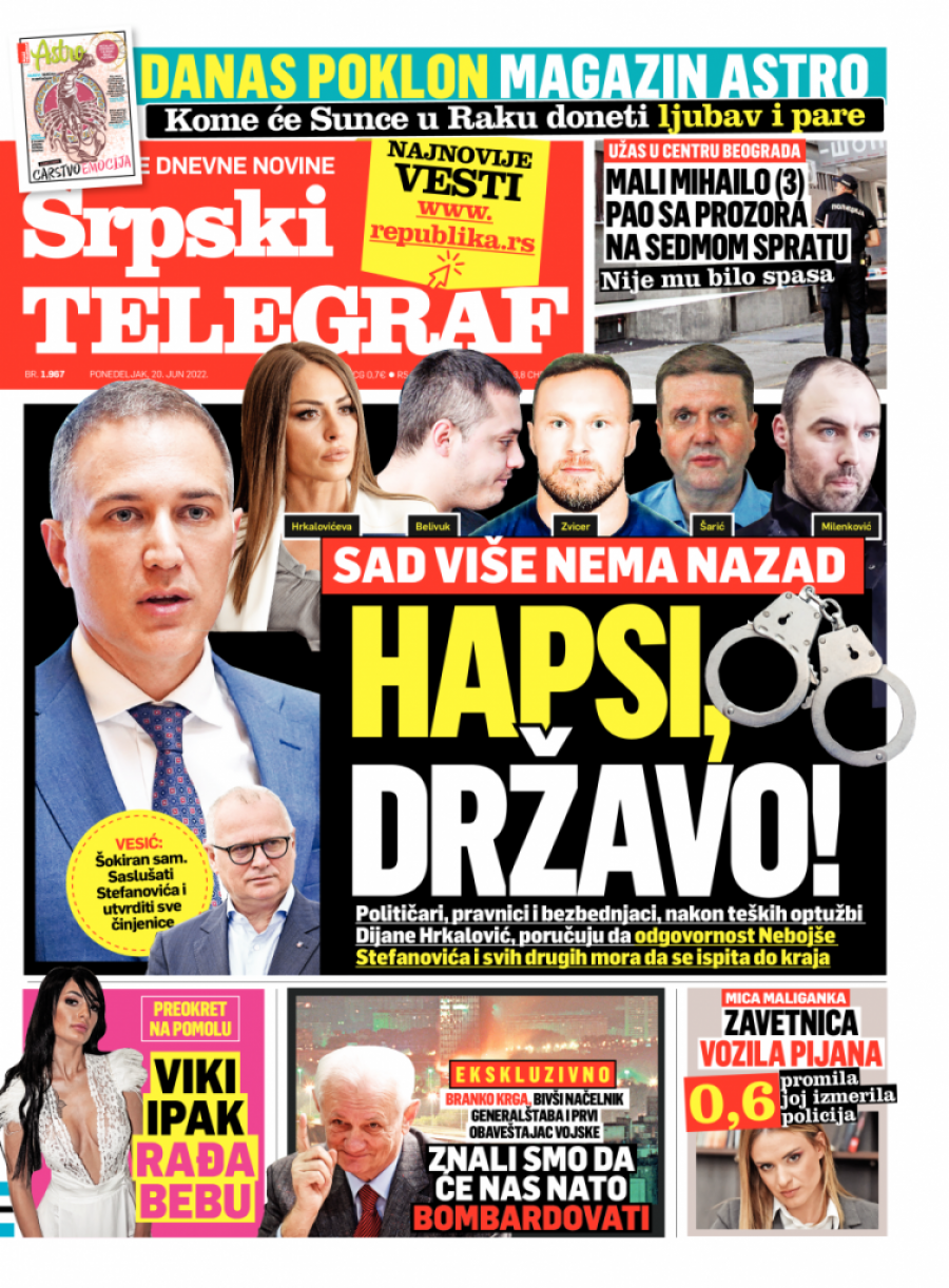 Srpski telegraf u štampanom izdanju za ponedeljak 20. jun donosi pregršt važnih i interesantnih priča.