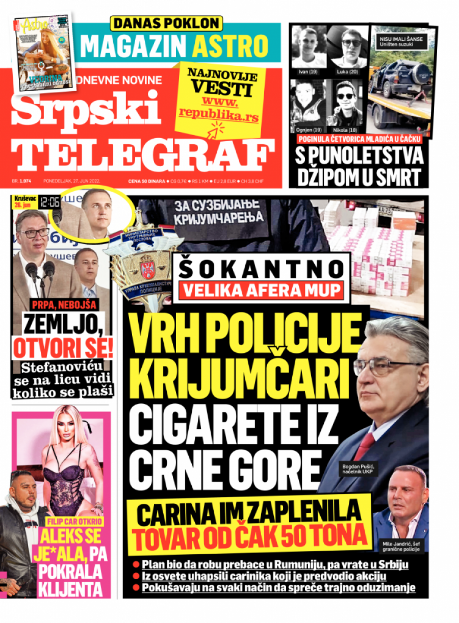 Srpski telegraf u štampanom izdanju za ponedeljak 27. jun donosi pregršt važnih i interesantnih priča.