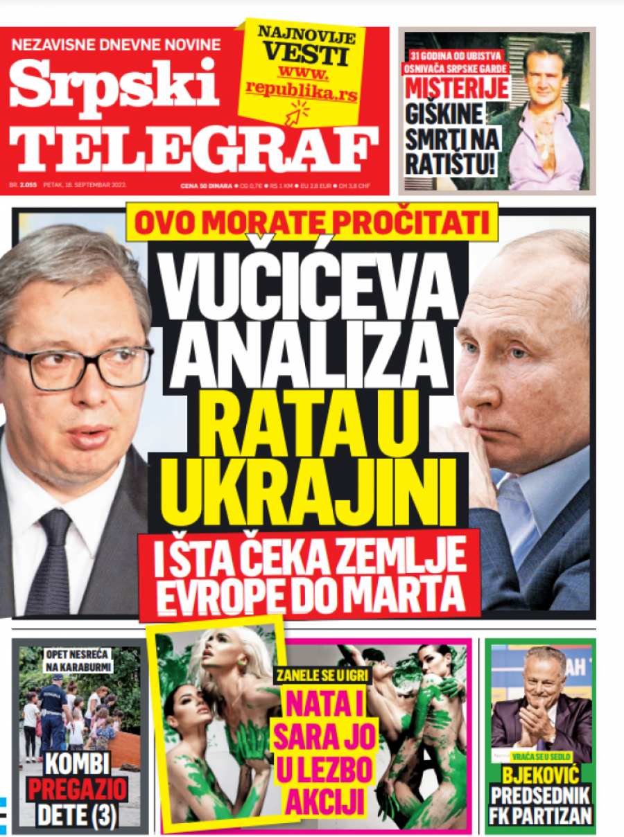 Srpski telegraf u štampanom izdanju za petak 16. septembar donosi pregršt važnih i interesantnih priča.