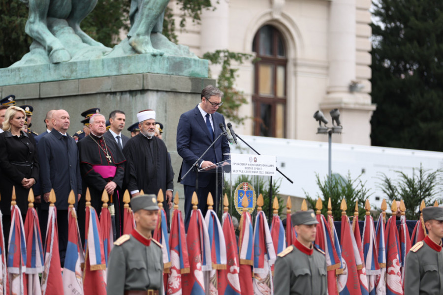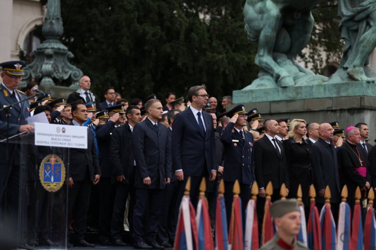 - Gradićemo snažniju domaću namensku industriu. Poštovani najmlađi potporučnici Vojske Srbije, vi koji ste izabrali ovaj poziv svesni ste toga da ste spremni da branite zemlju, ali znajte da Srbija svoju vojsku ceni, voli i zna šta joj ta vojska znači. Svi namo šta znači prisustvo naše Vojske Srbije. Ipak, bez vas, bez vašeg zaveta Srbiji, svi naši napori bili bi uzaludni. Ko zna, taj može, ko nema straha taj ide napred. Vojvoda Mišić je umeo da podigne snagu naše vojske ovom izrekom - naglasio je predsednik i dodao: