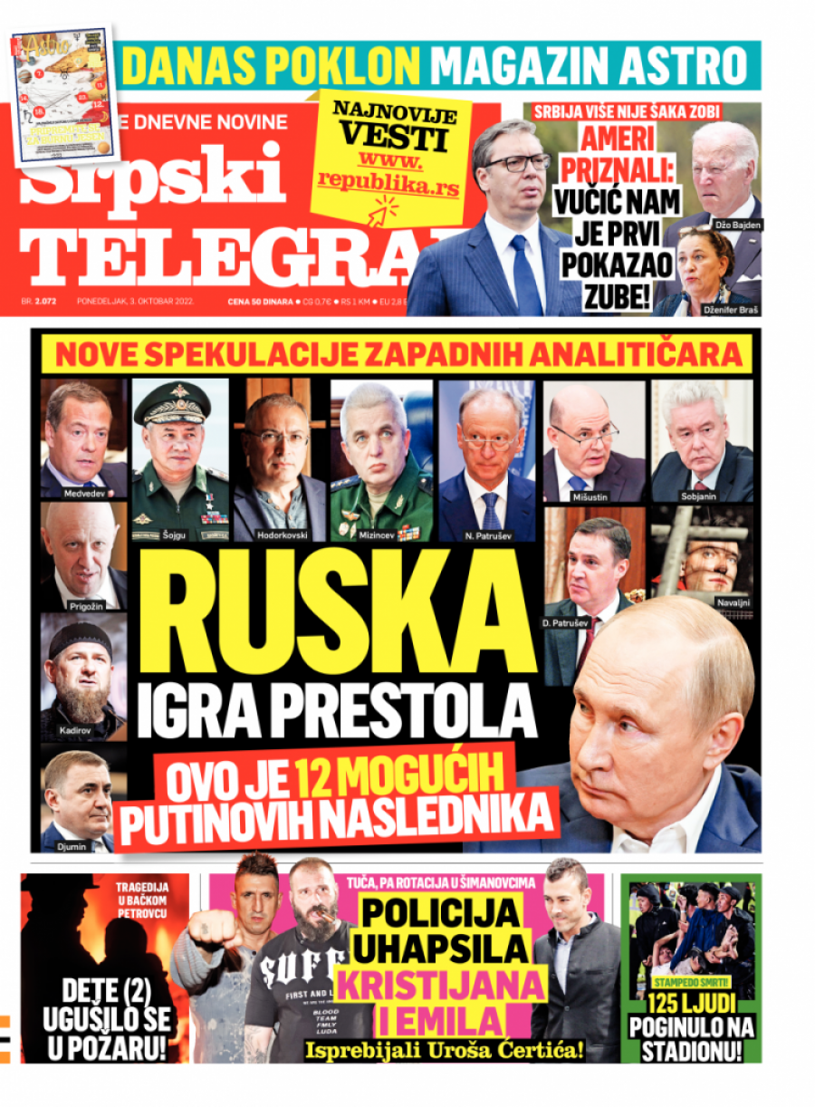 Srpski telegraf u štampanom izdanju za ponedeljak 3. oktobar donosi pregršt važnih i interesantnih priča.