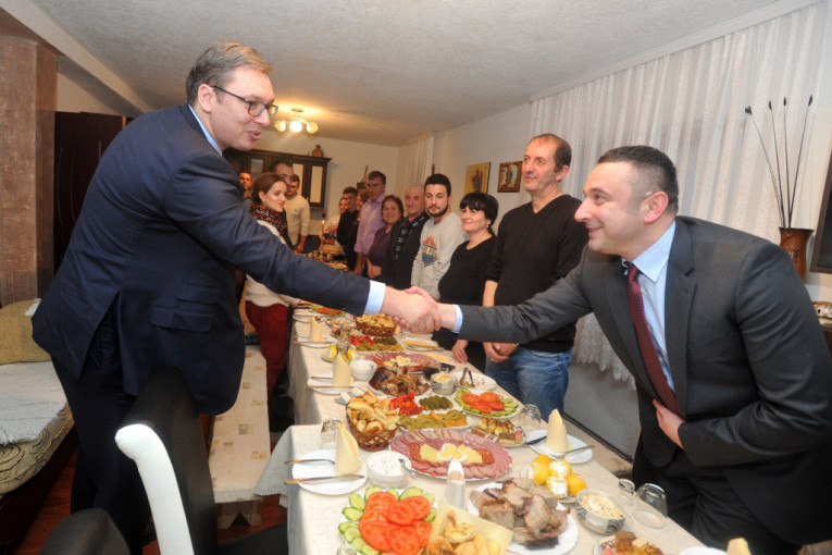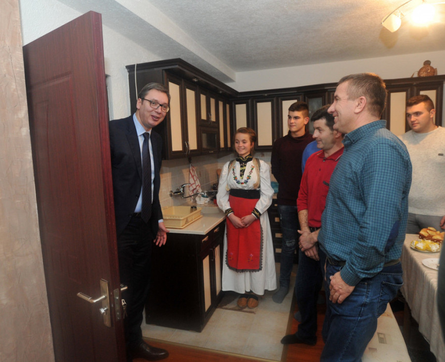 Predsednik Srbije Aleksandar Vučić je posetio je danas popodne jednu srpsku porodicu u Gračanici, koja slavi Svetog Jovana.