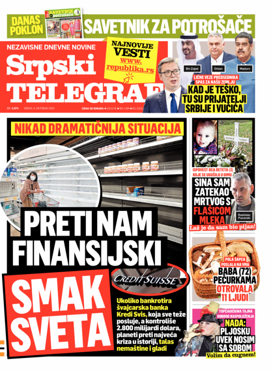 Srpski telegraf u štampanom izdanju za četvrtak 6. oktobar donosi pregršt važnih i interesantnih priča.