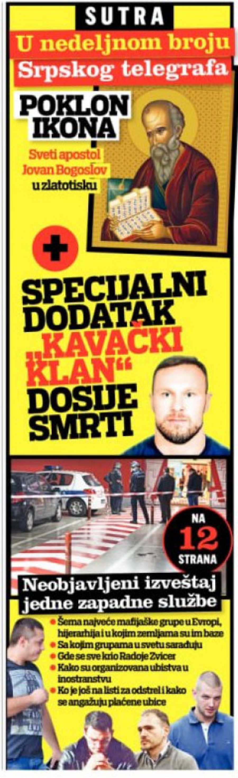 NE PROPUSTITE NEDELJNO IZDANJE SRPSKOG TELEGRAFA: Specijalni dodatak o kavačkom klanu - DOSIJE SMRTI