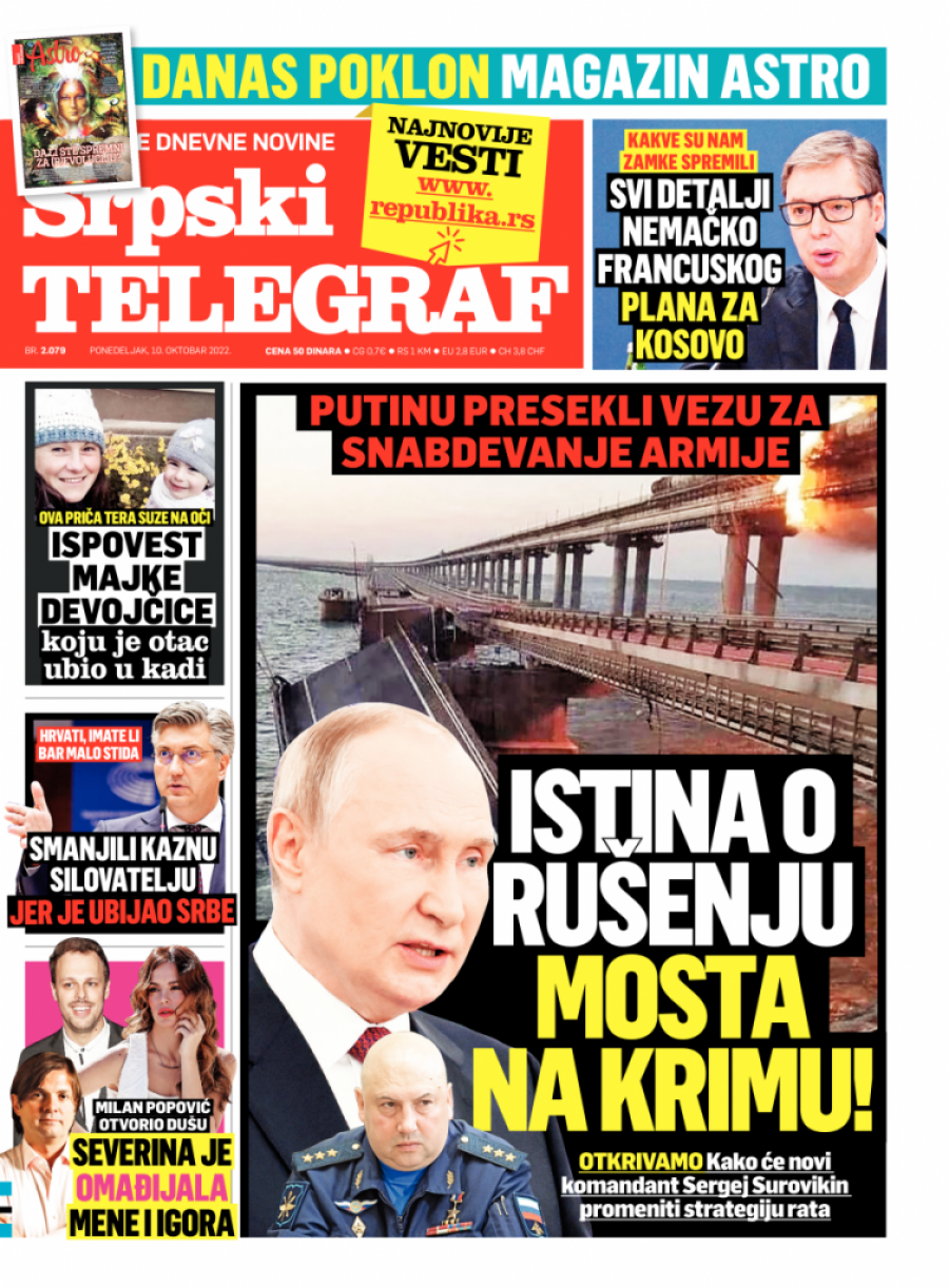 Srpski telegraf u štampanom izdanju za ponedeljak 10. oktobar donosi pregršt važnih i interesantnih priča.