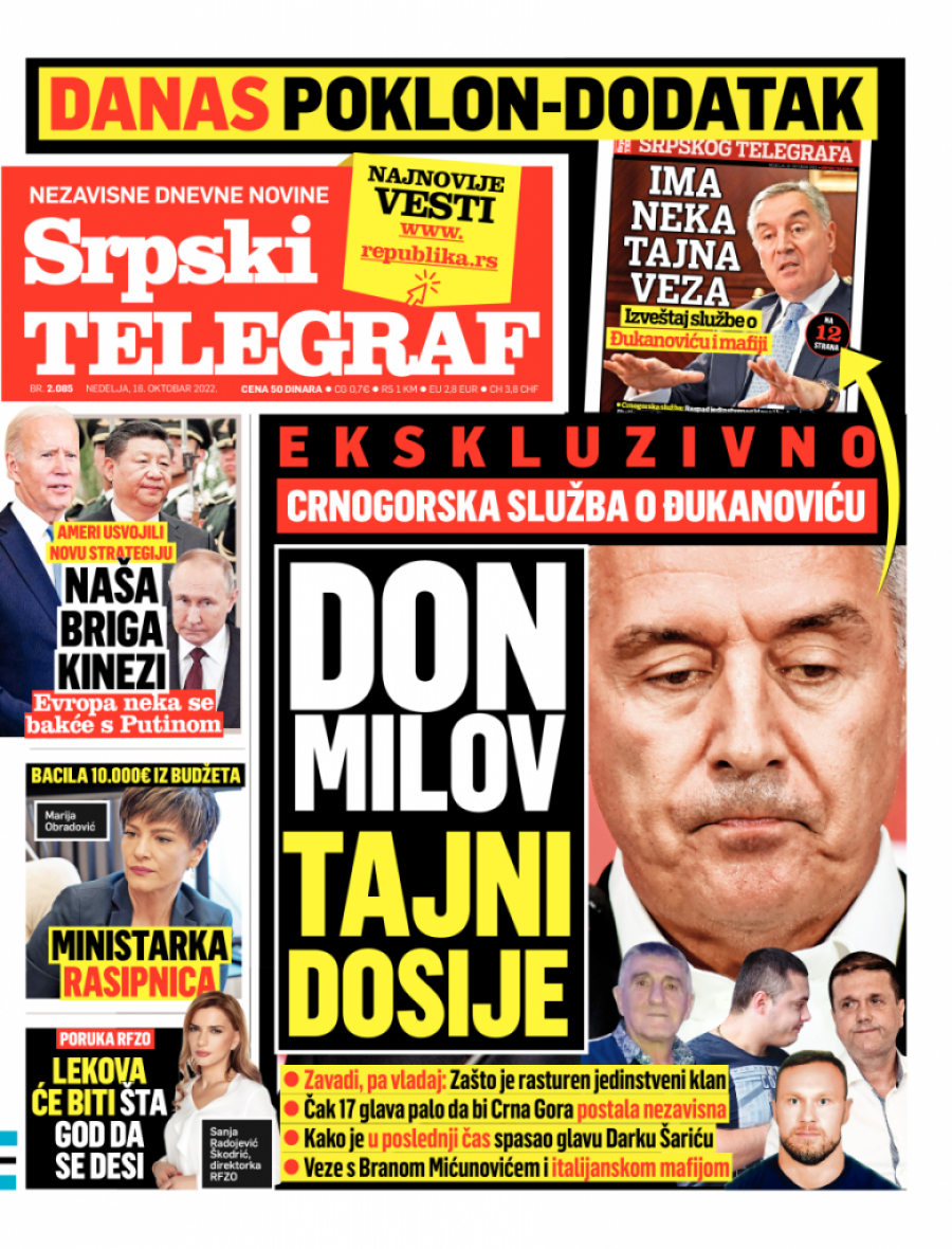 Srpski telegraf u štampanom izdanju za nedelju 16. oktobar donosi pregršt važnih i interesantnih priča.