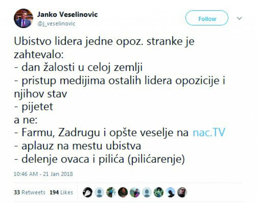 Najstrasnije je kada kazu da je Vuciceva poseta nekakava politicka zadruga ili veliki brat, a dobro se zna da su te rijalitije u Srbiji patentirali lopovi koji ga napadaju