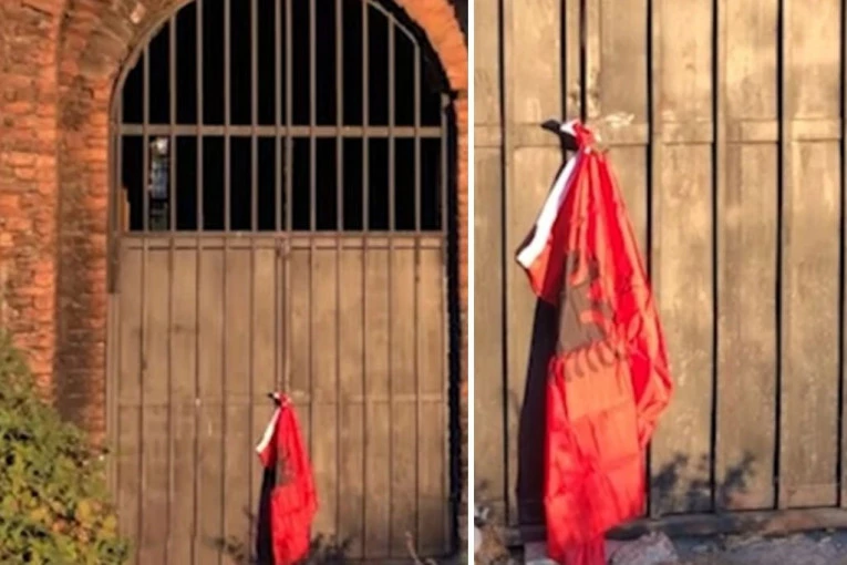 Zastava Albanije okačena je na vratima Hrama Hrista Spasa u Prištini, javlja RTS.