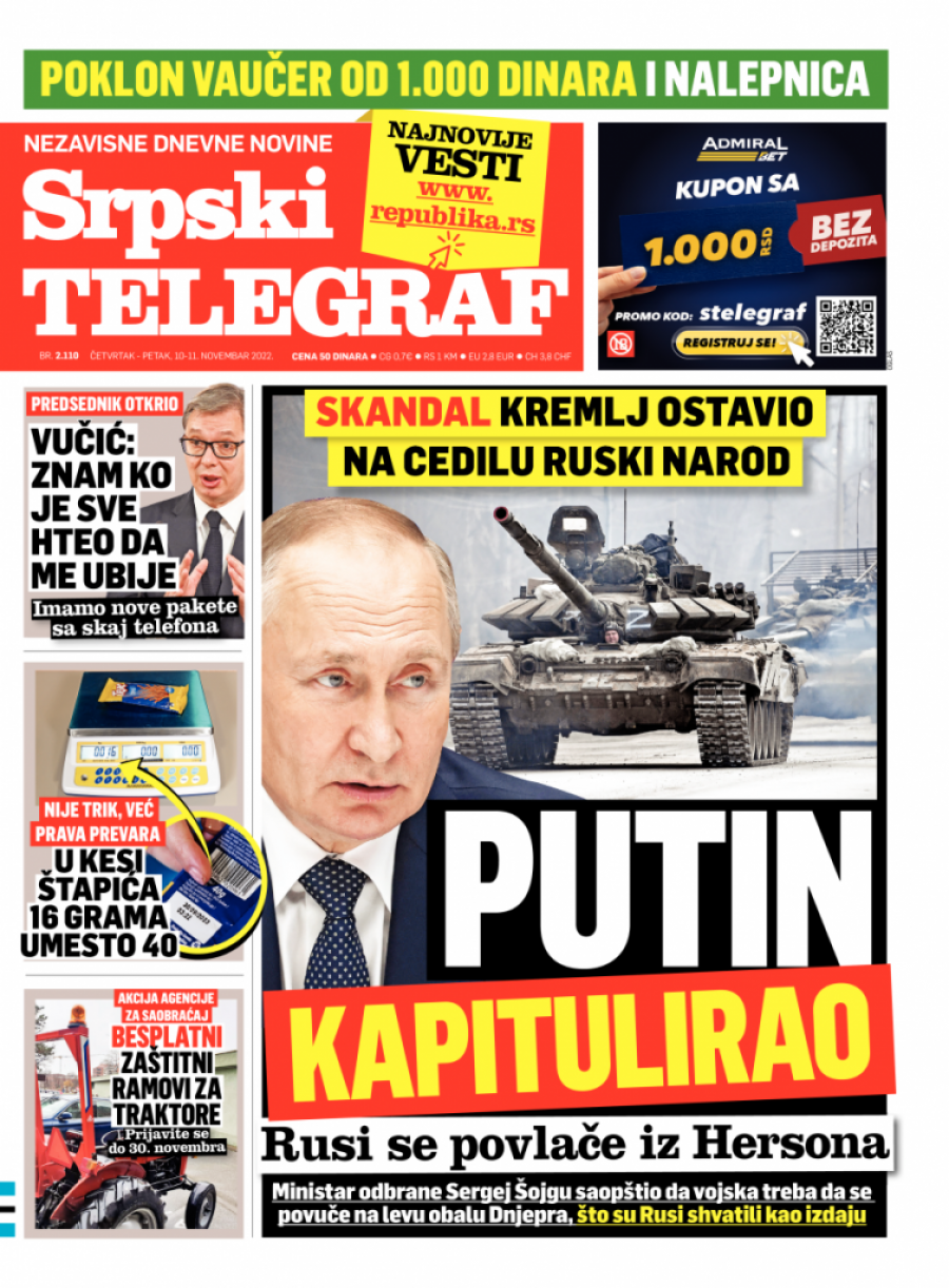 Srpski telegraf u štampanom izdanju za četvrtak 10. novembar donosi pregršt važnih i interesantnih priča.