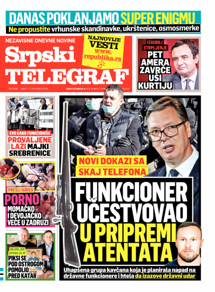 Srpski telegraf u štampanom izdanju za subotu 12. novembar donosi pregršt važnih i interesantnih priča.