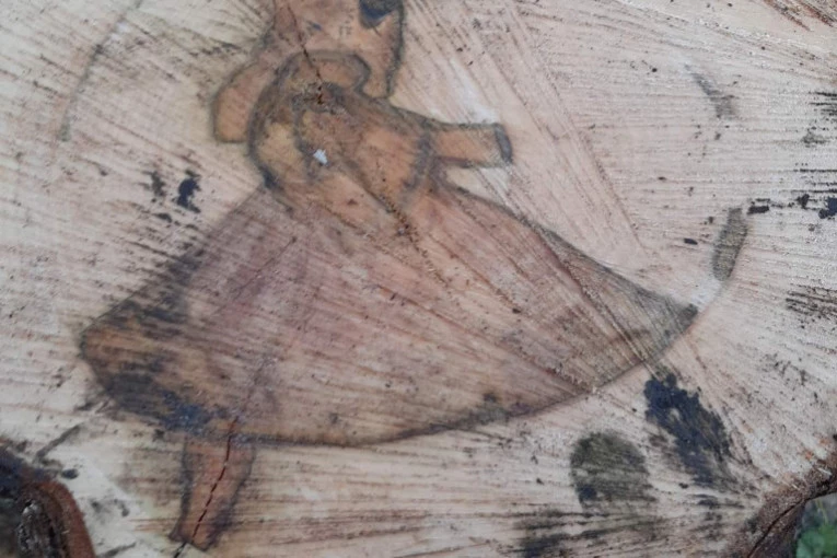 - Kada smo drvo oborili i počeli da ga kratimo na manje komade da bi lakše odneli do prikolice, primetio sam da ima neku šaru na donjem delu stabla. Kada sam se bolje zagledao primetio sam da je to balerina, toliko pravilno oslikana na panju kao da je neko crtao. Viđao sam do sada razne detalje na stablima, leptira, krst ali ovako nešto do sada video nisam - kaže za RINU Marko Marković iz Rudovaca.