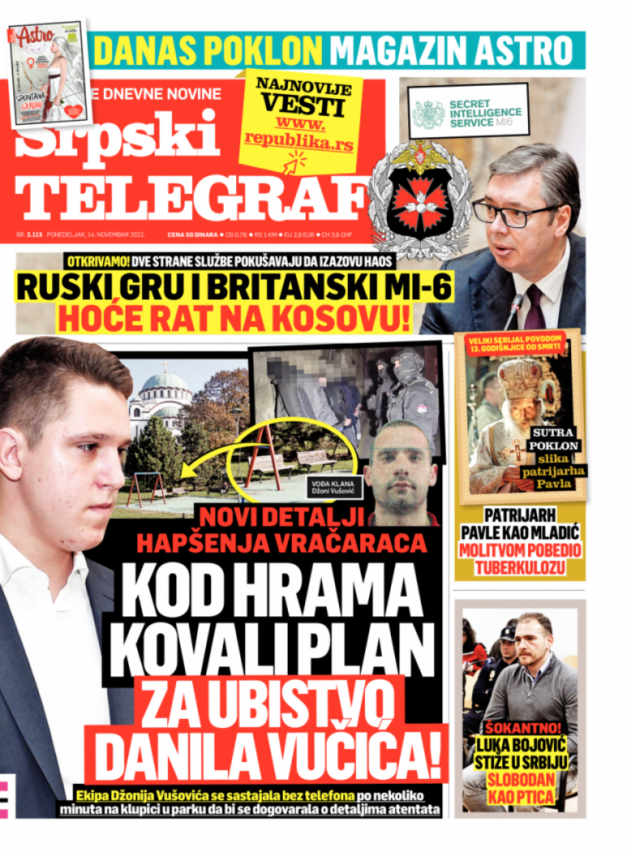 Srpski telegraf vam u štampanom izdanju za ponedeljak 14. novembar donosi pregršt važnih i interesantnih priča.