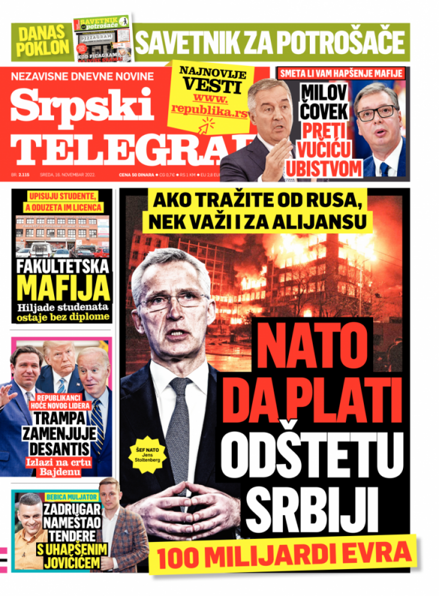 Srpski telegraf u štampanom izdanju za sredu 16. novembar donosi pregršt važnih i interesantnih priča.