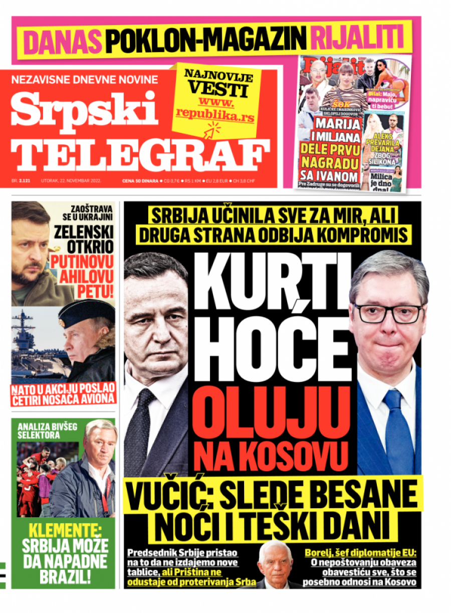 Srpski telegraf u štampanom izdanju za utorak 22. novembar donosi pregršt važnih i interesantnih priča.