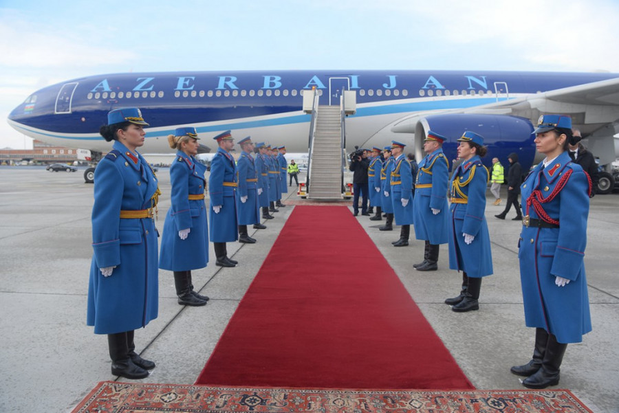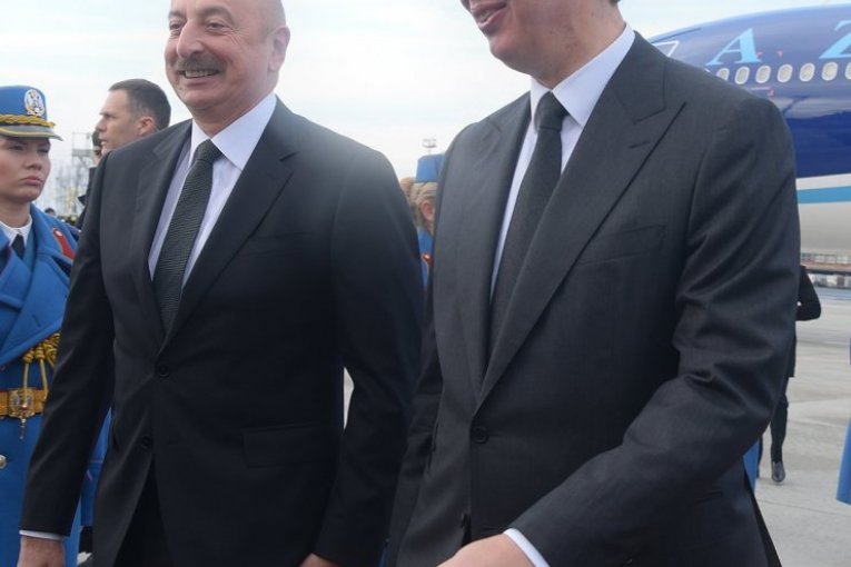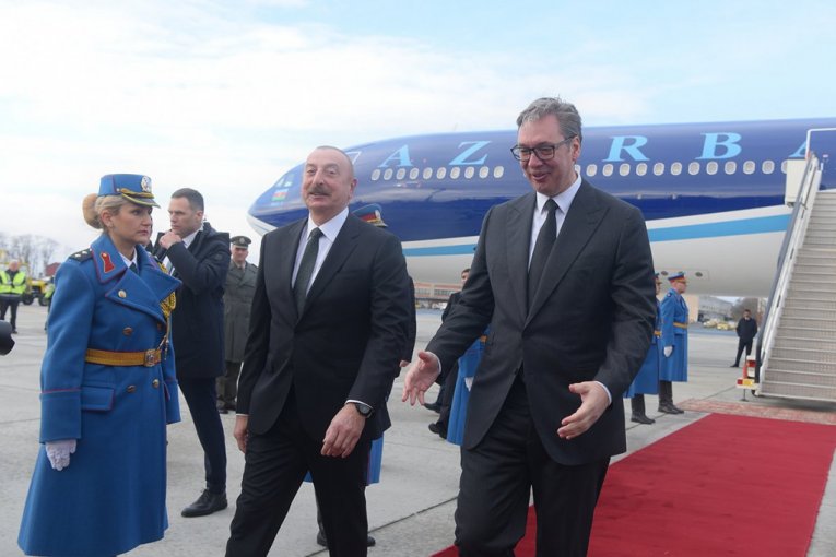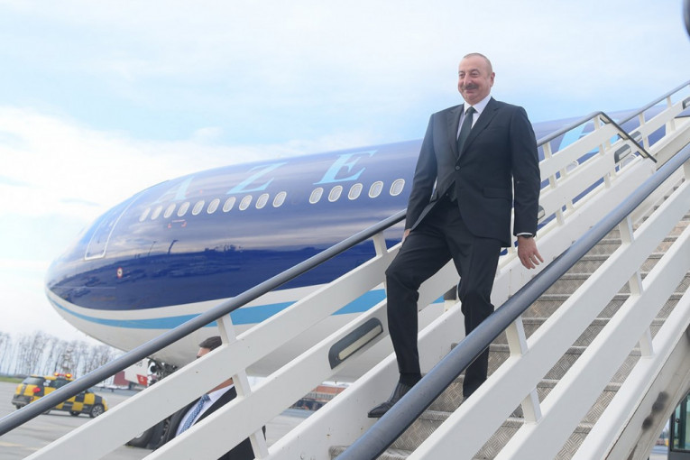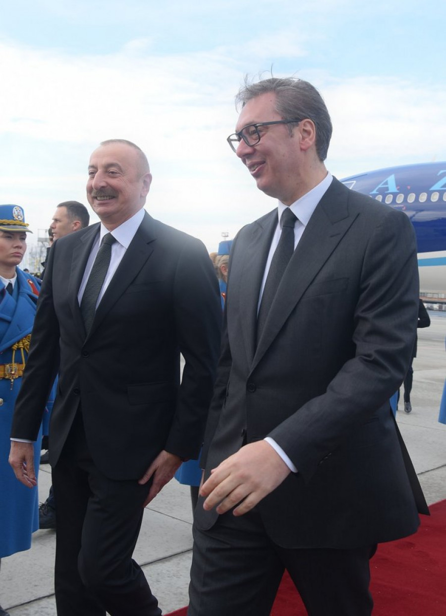 Predsednik Azerbejdžana Ilham Alijev doputovao je danas u zvaničnu posetu Srbiji, a na aerodromu "Nikola Tesla" dočekao ga je predsednik Srbije Aleksandar Vučić.