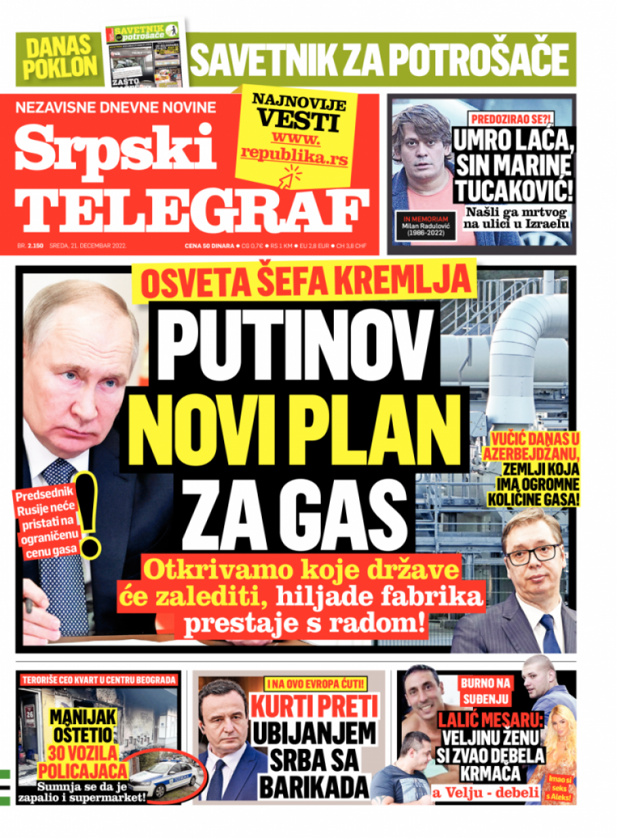 Srpski telegraf u štampanom izdanju za sredu 21. decembar donosi pregršt važnih i interesantnih priča.