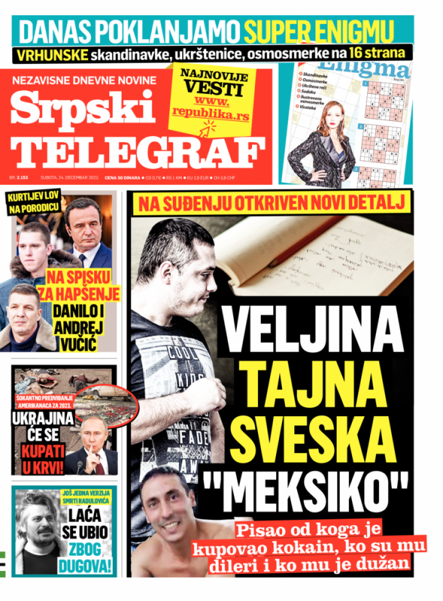 Srpski telegraf u štampanom izdanju za subotu 24. decembar donosi pregršt važnih i interesantnih priča.